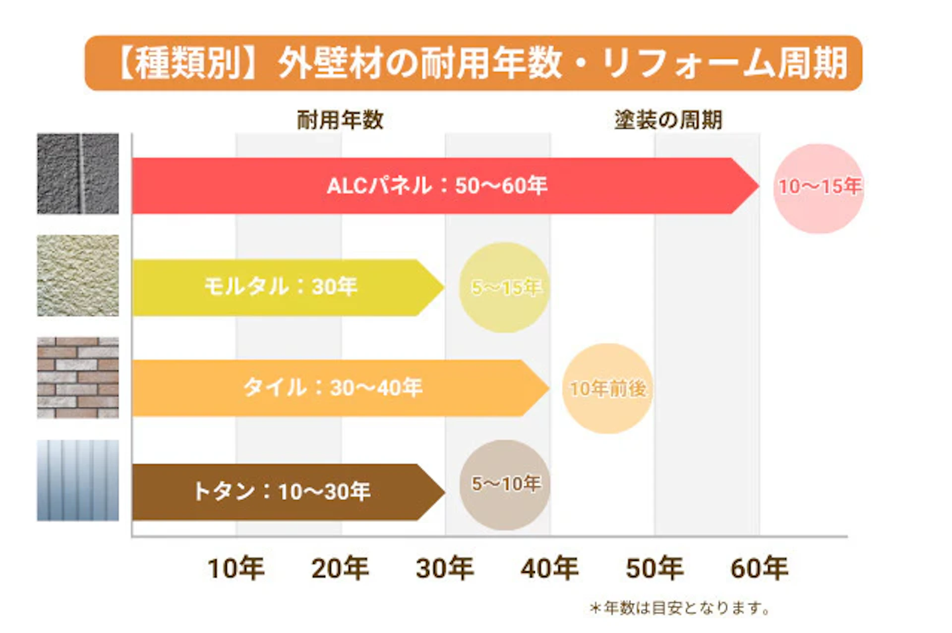 たいていの外壁は10~15年毎に、塗装によるメンテナンスを行うことで、耐久力を保持できます。