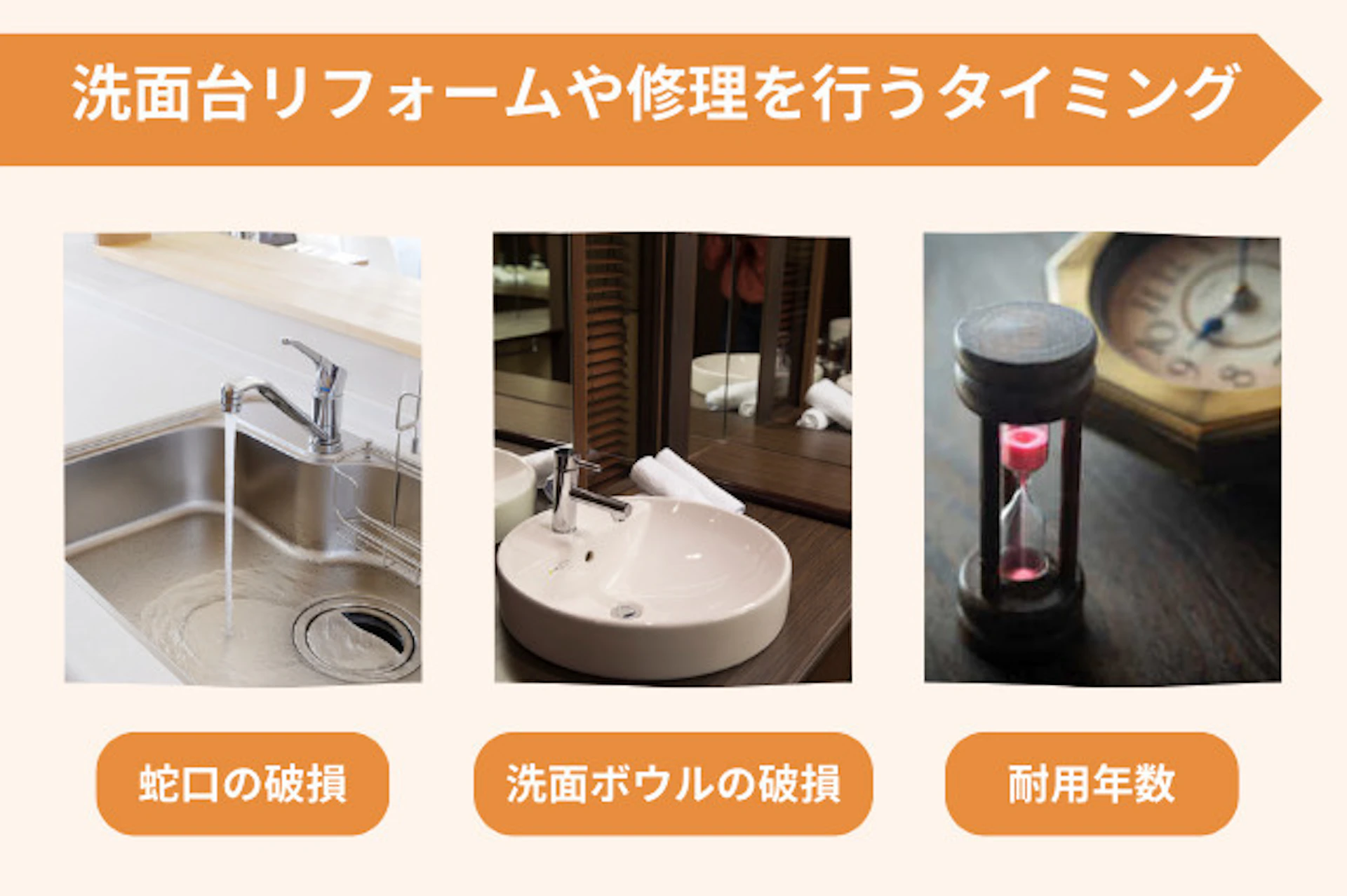 洗面台リフォームや修理を行うタイミングは、主に以下のようなときです。