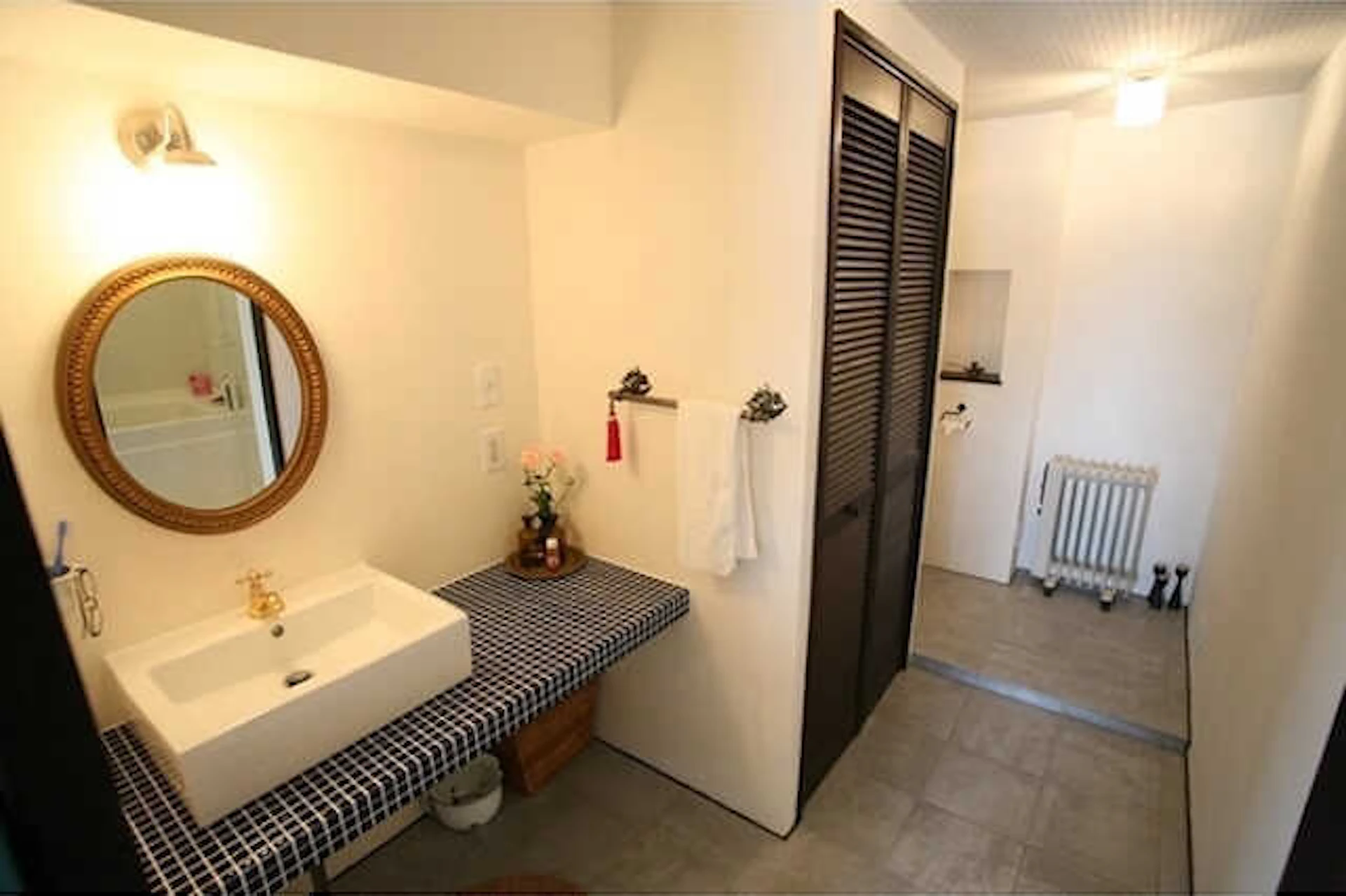 出っ張りがある壁に合うようにカウンターを設置して、オリジナルの洗面台を造作しました。