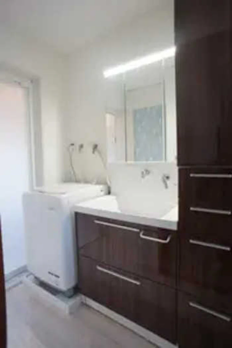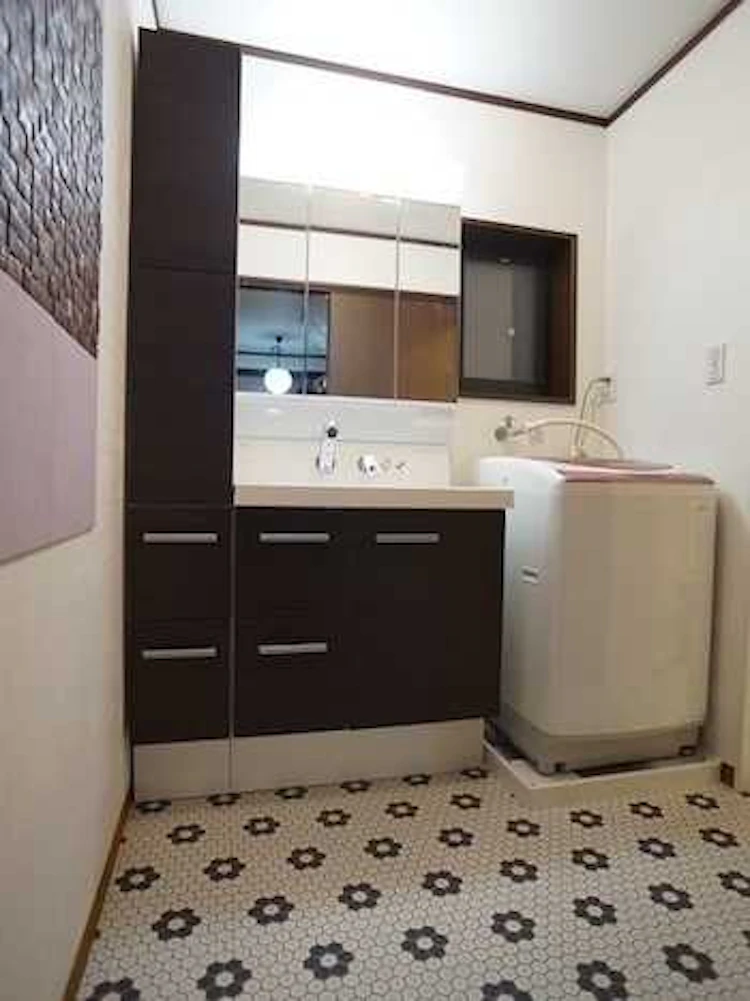 よりデザイン性や機能性が高い洗面台の設置と内装工事を行い、快適な空間に仕上げています。
