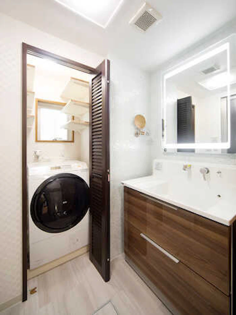 また、間取り変更をして洗面所を広くしたことで、以前は独立していた洗濯機のスペースも十分に取れるようになりました。
