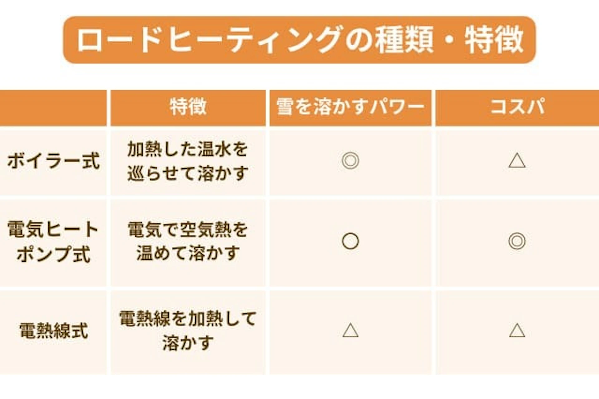 詳しくは、ロードヒーティングの種類の違いで解説しています。
