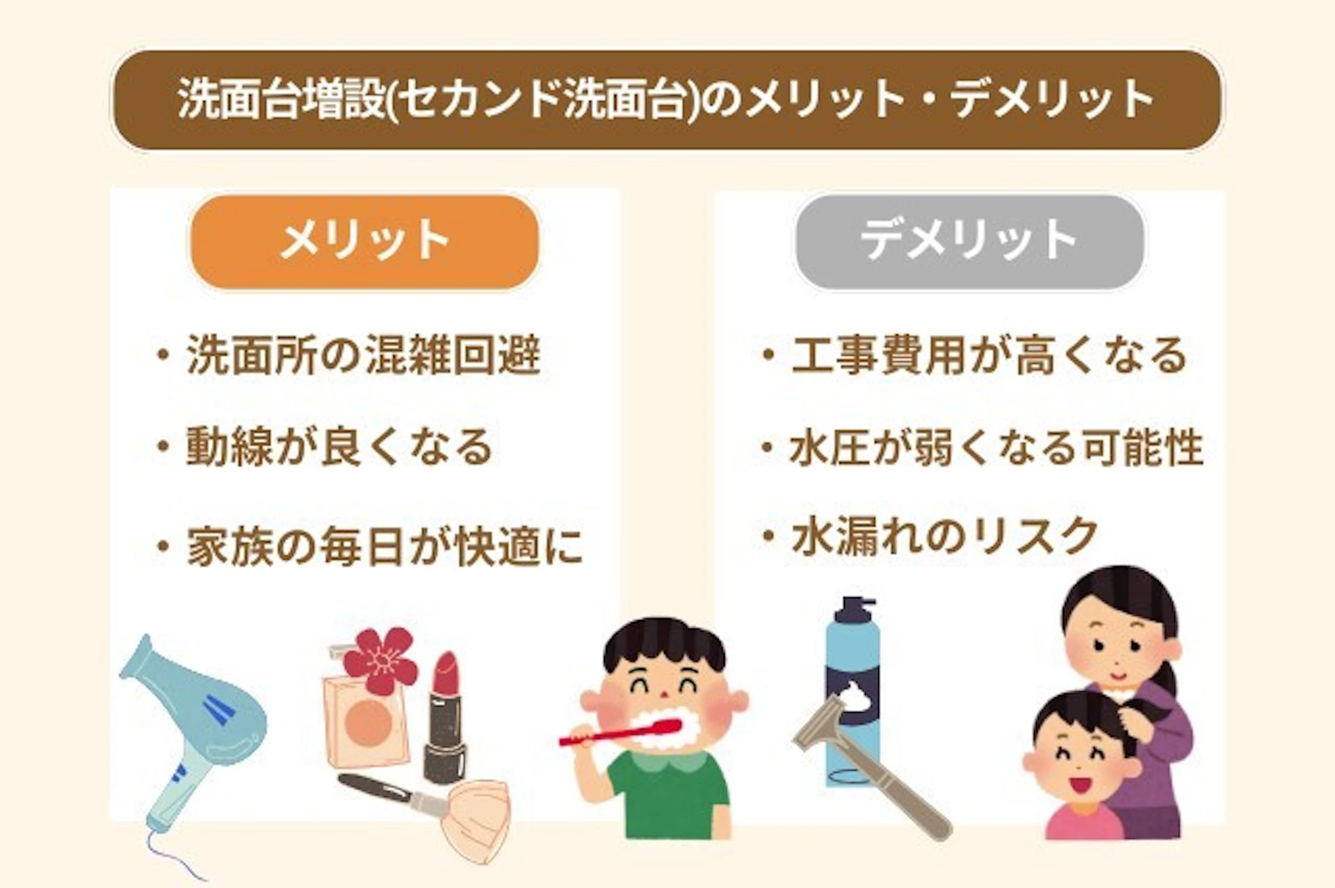 洗面台増設(セカンド洗面台)のメリット、デメリットと注意事項とは?