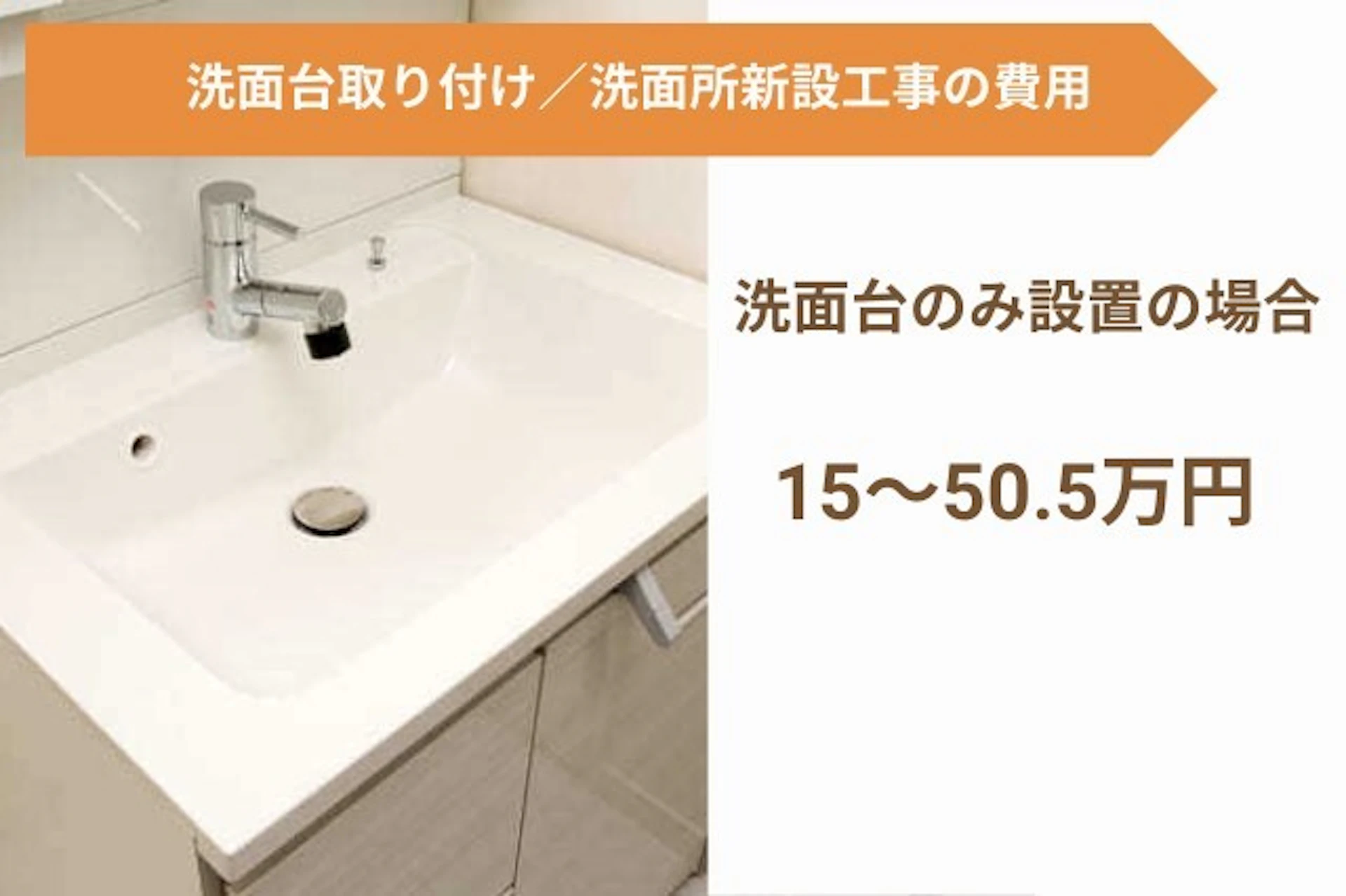 廊下や部屋の一角など、既存のスペースに洗面台を設置する場合、費用の相場は15~50.5万円です。