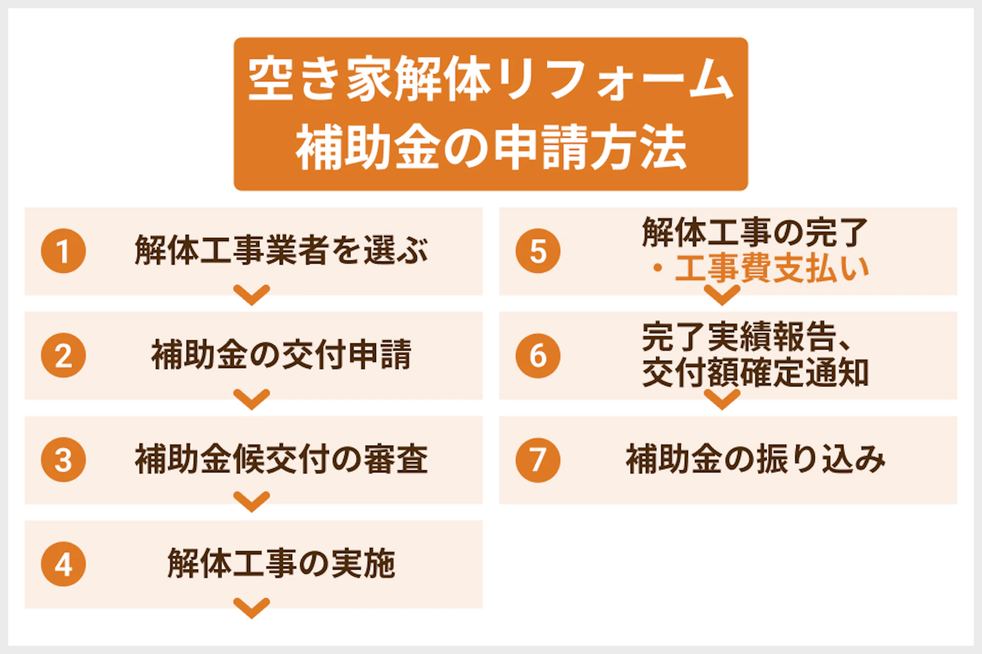 補助金は工事完了後に支給されるため、先に解体費用の支払いが必要となります。
