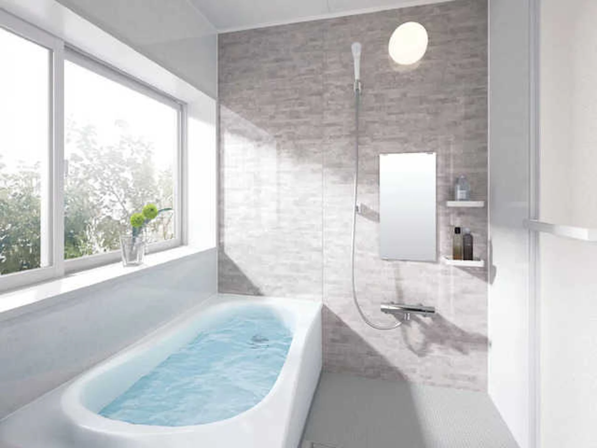 クレアライトグレー×プリエホワイトは、落ち着いた雰囲気を演出し、シックな浴室に仕上がります。