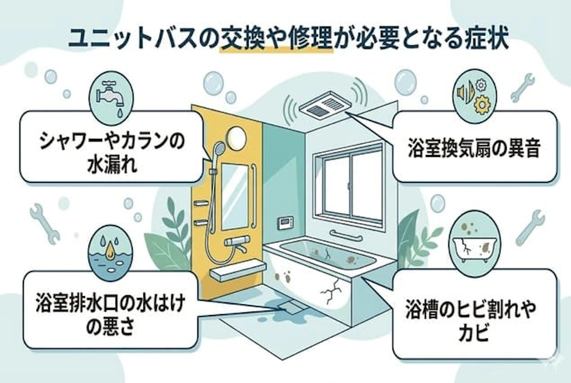 ユニットバスの交換や修理が必要となる症状