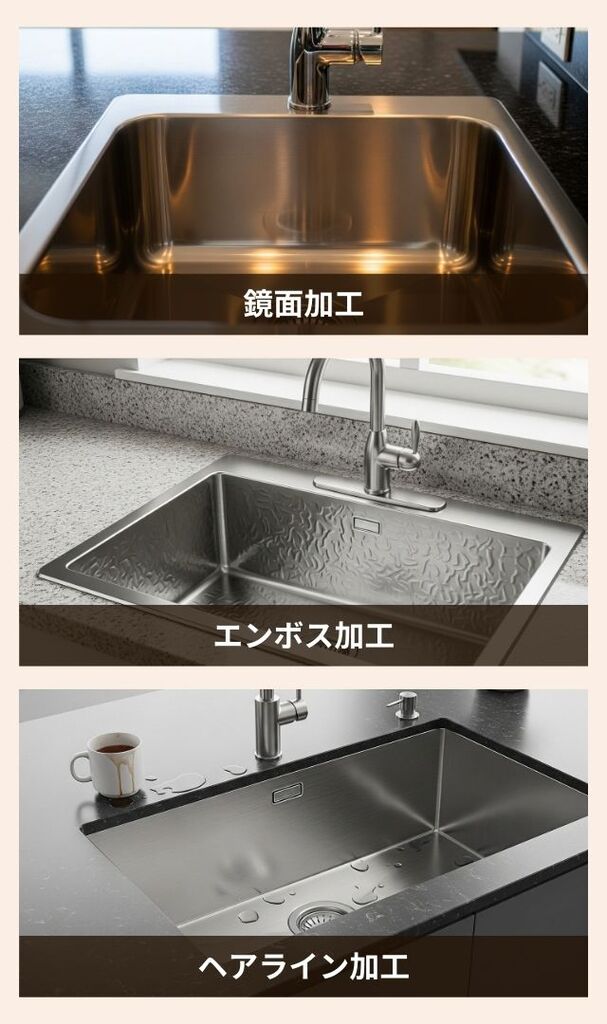 ステンレスシンクの仕上げの種類3選をご紹介します。