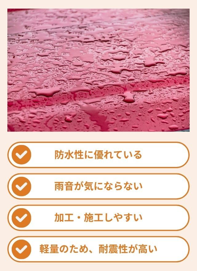 | 「防水性に優れている」「軽量のため耐震性が高い」などのメリットがあります。 |