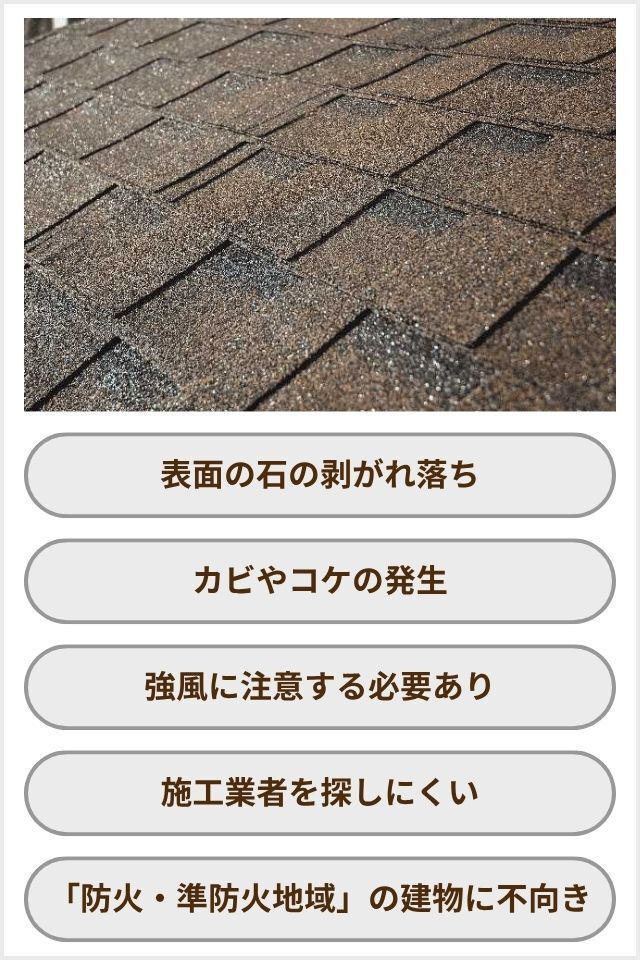 アスファルトシングルは前述した通り、強風により剥がれなどの症状が発生する場合があります。