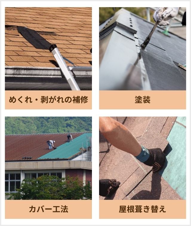 深刻な場合は、再発を防ぐために「塗装」「カバー工法(重ね葺き)」「葺き替え」のリフォームを行う場合があります。