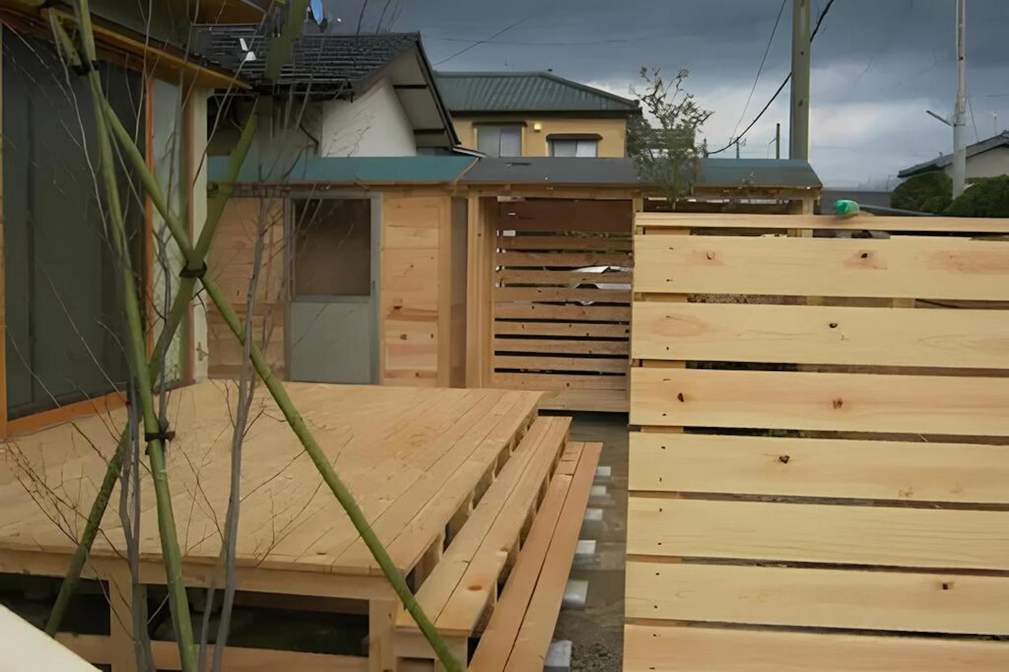 また、フェンスとウッドデッキを同系色の木材で揃えると、統一感のあるスペースが完成します。