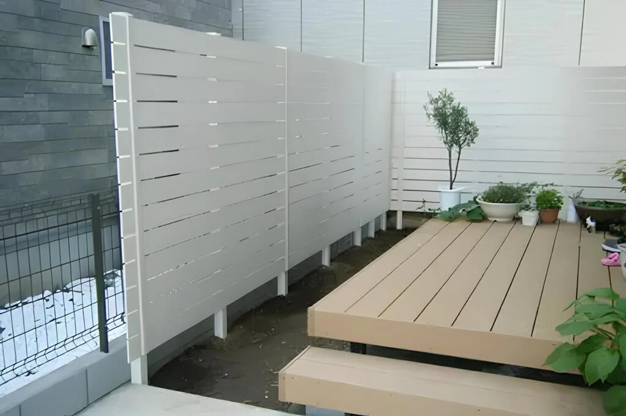 フェンスの素材は白色系の木材(人工木材)を選ぶと、より開放感のある明るい空間に仕上がります。