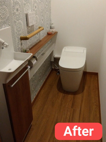 | 約35万円で階段下のトイレを「アラウーノ」にリフォームした事例(一戸建て)など、こちらに掲載していますので、ご覧ください。 |