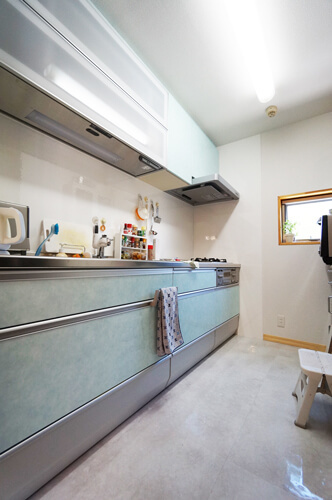 キッチンの位置とレイアウトを変えずに、似た形状の本体に交換する際は、比較的に安価で施工できる例も多く見られます。