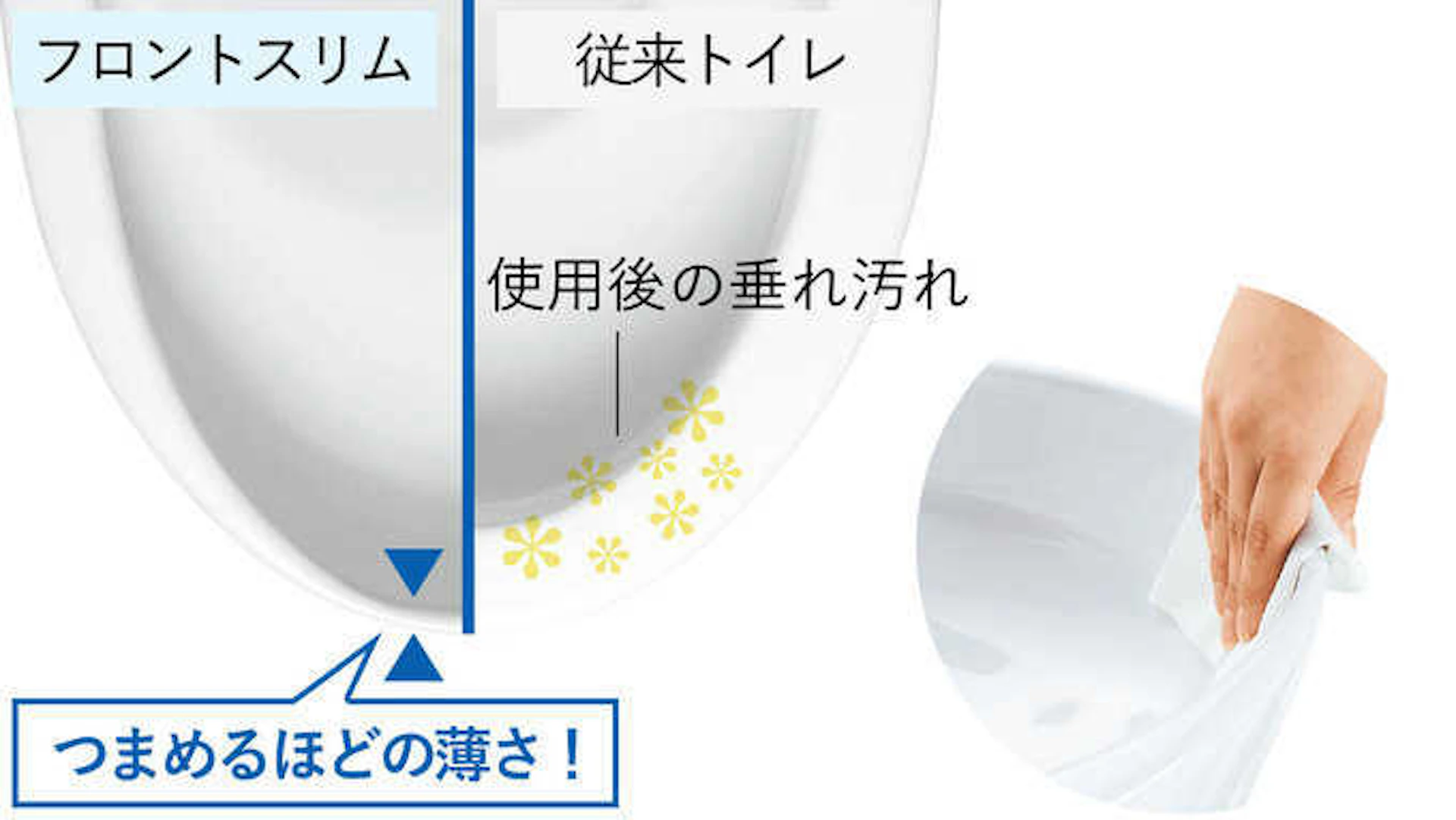 便器の手前部分が従来のトイレに比べ、非常に薄くなっています。
