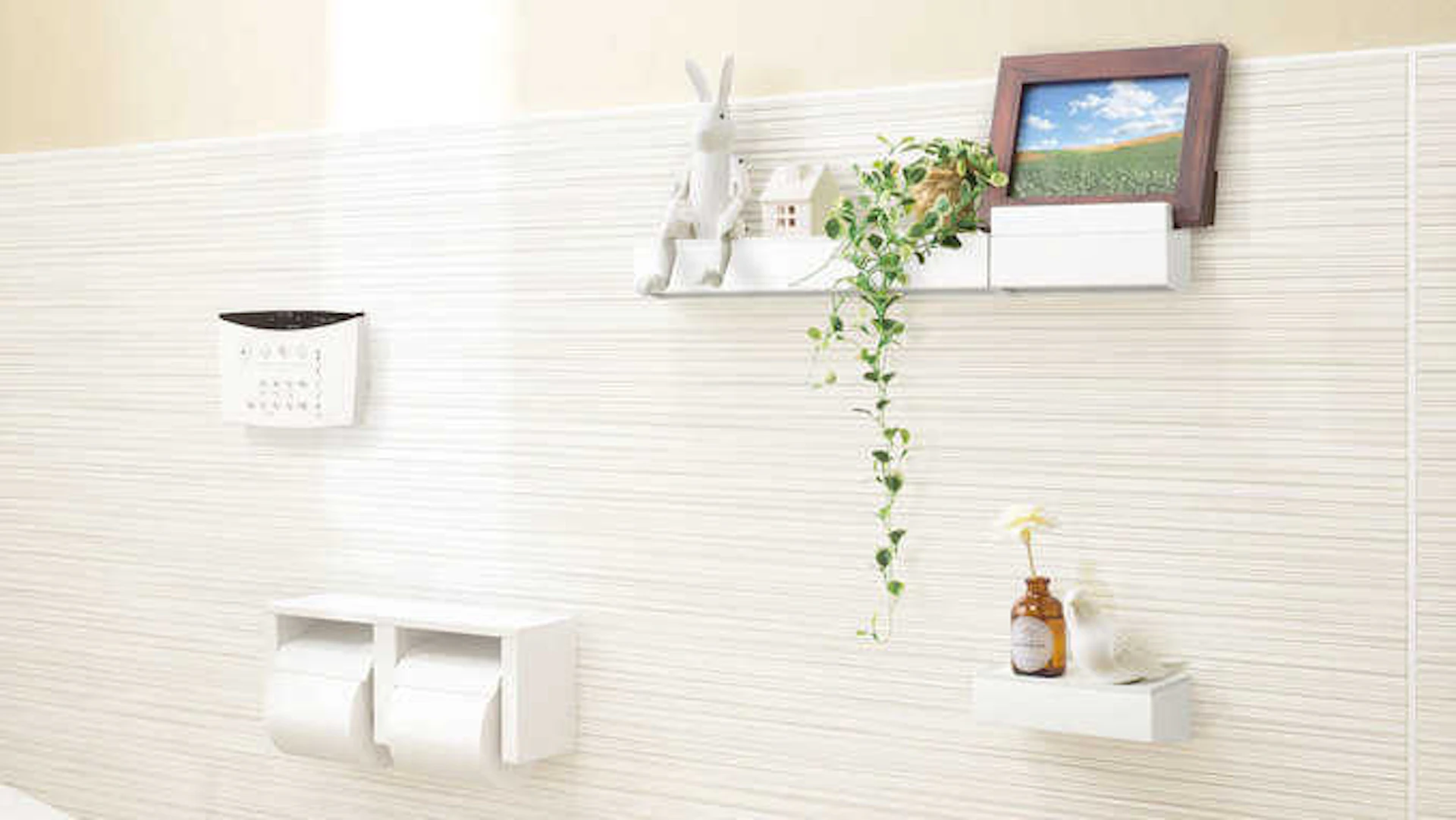 「どこでもラック」と呼ばれるこの機能のおかげで、トイレットペーパーホルダーやタオルかけなど、左右の位置や高さの微妙な調整も自由自在です!