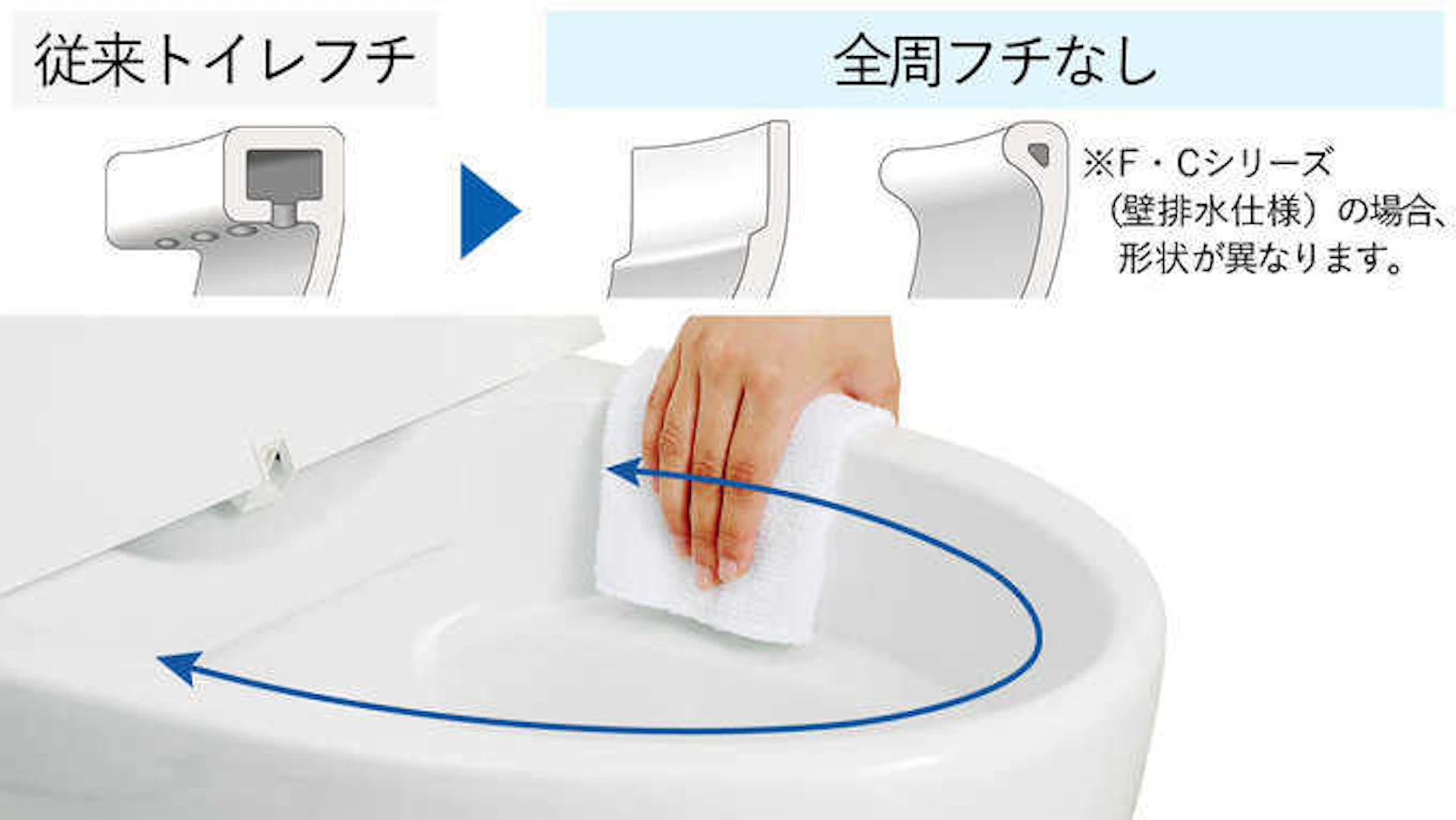 タカラスタンダードのトイレは全周フチをなくすことにより、お手入れの手間を圧倒的になくしました。