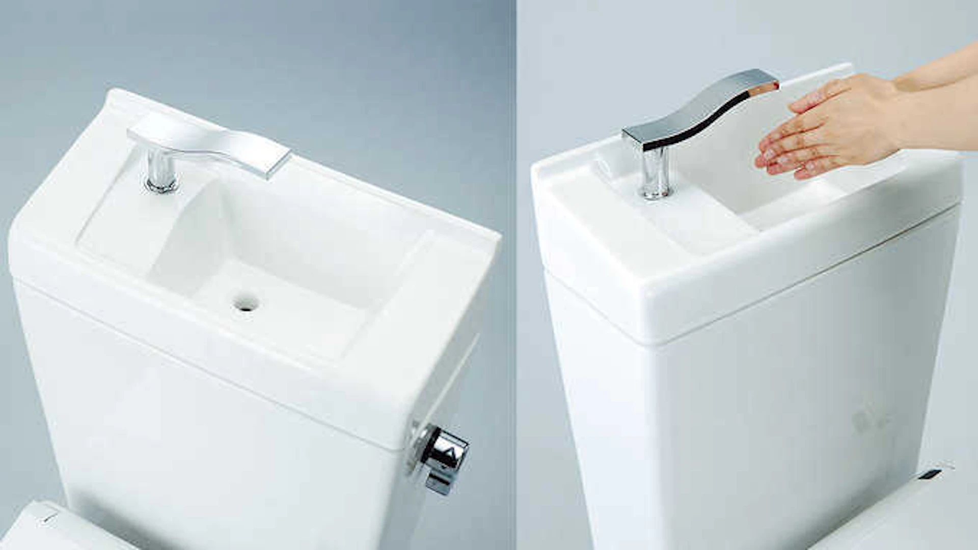 スタイリッシュなだけでなく、手洗いスペースが従来よりも深めになっているので、床や壁に水が飛び散りにくくなっています。