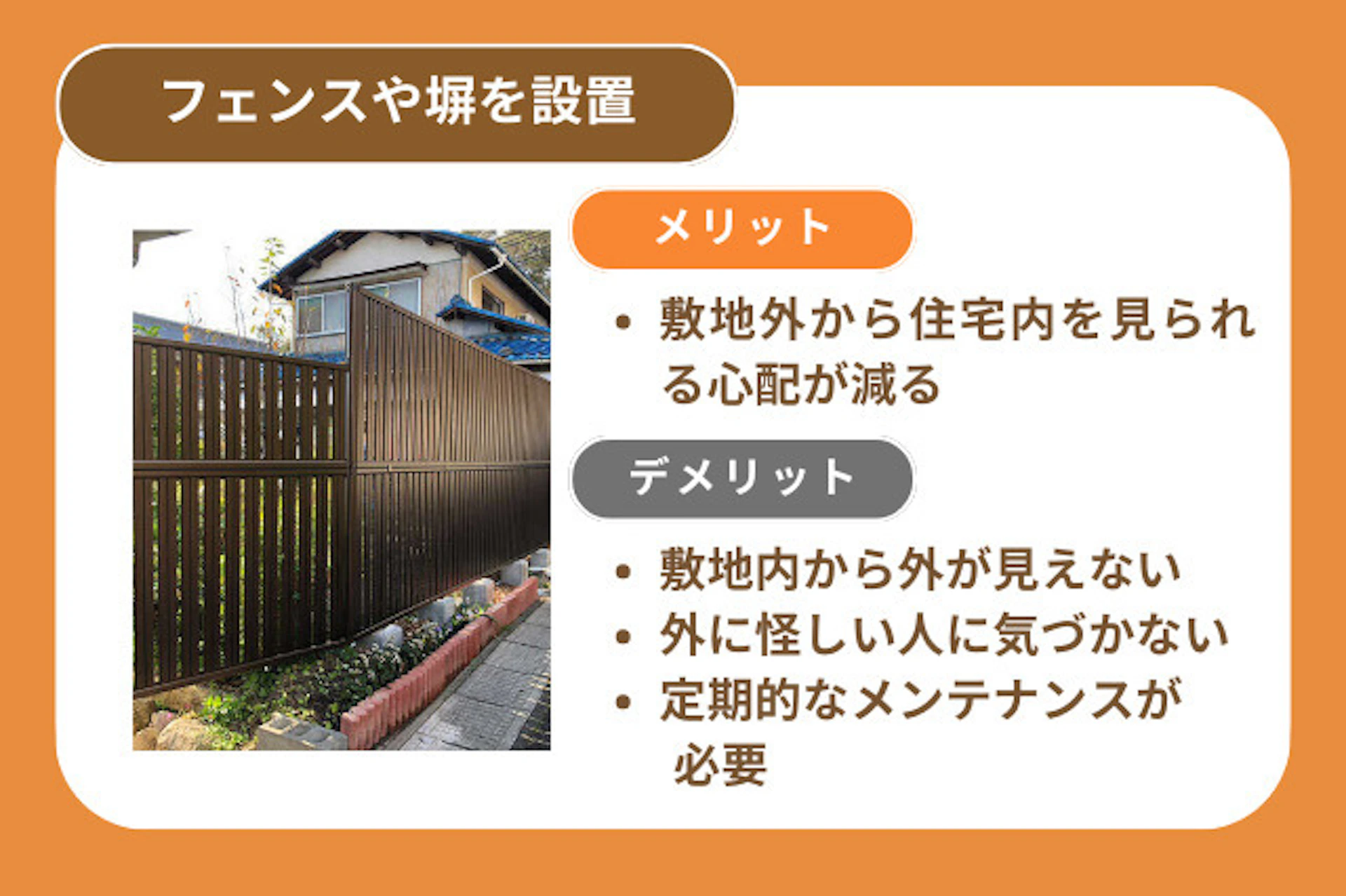 メリットは、外から見えなくしたり、侵入を阻んだりできる点です。