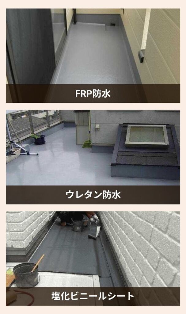 「FRP(繊維強化プラスチックス)防水」と「ウレタン防水」の2種類です。