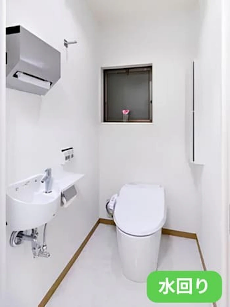② 腰壁や白い床を採用し、清潔に保てるように工夫