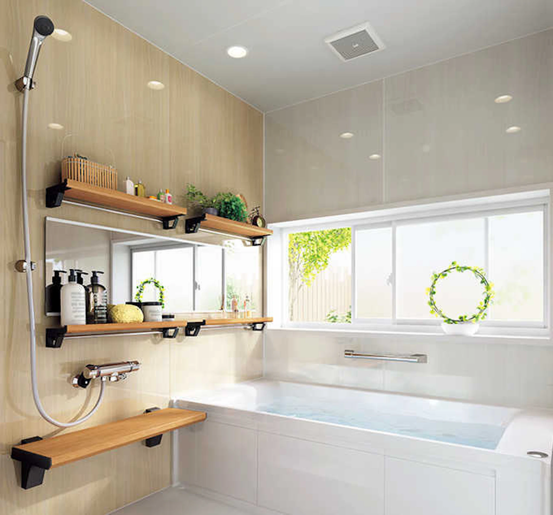 高い保温性と安全な設計、お手入れのしやすさという3点を重視した、安らぎのバスルームです。