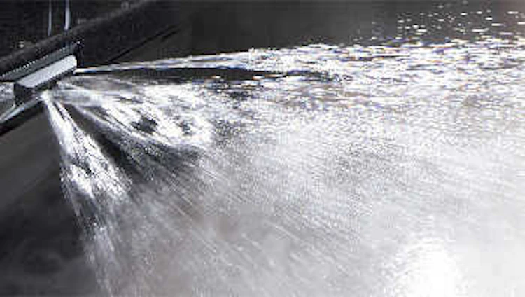 カウンターに装備された専用のシャワー口から、温かいお湯が床に向かって一気に噴出されます。