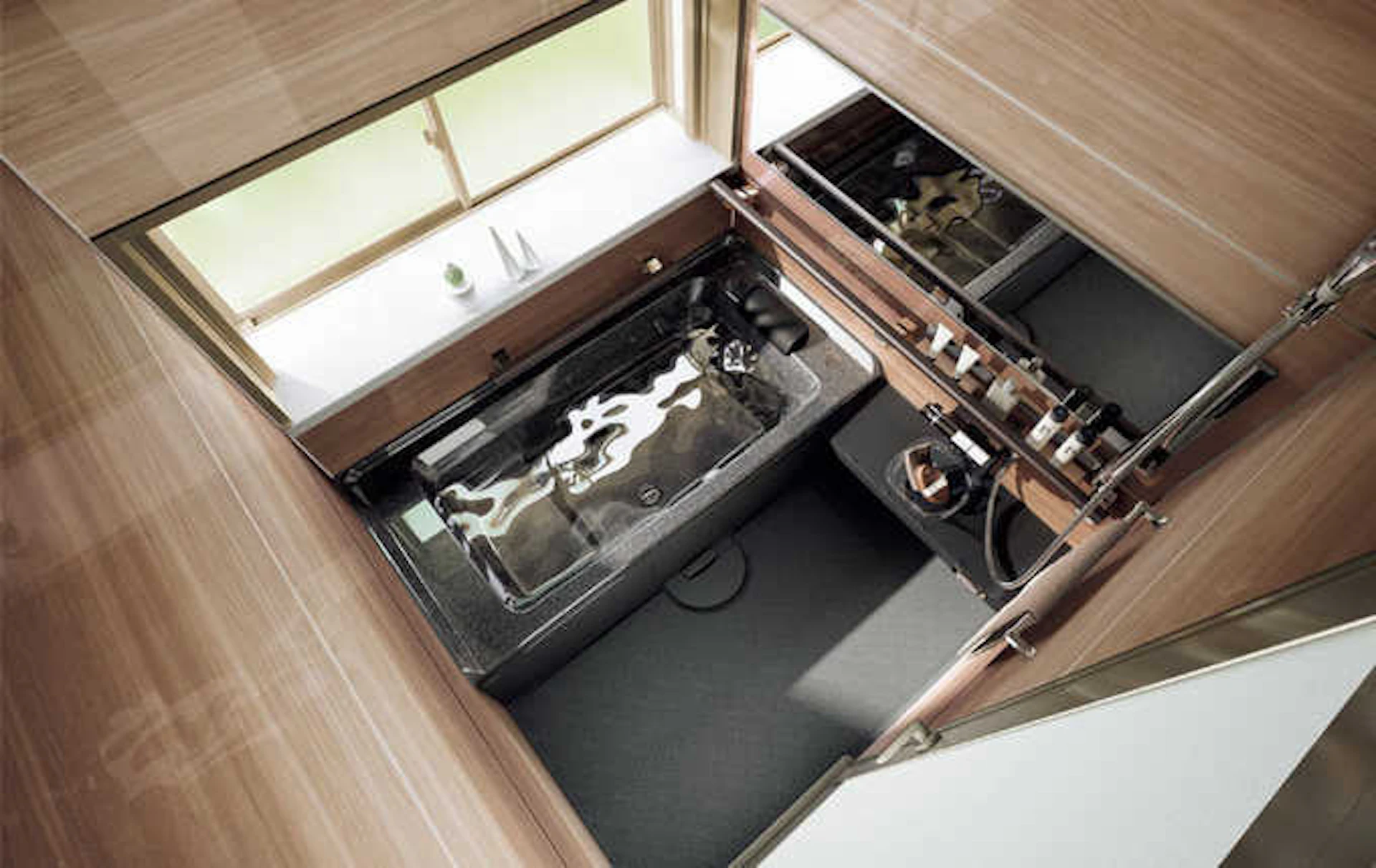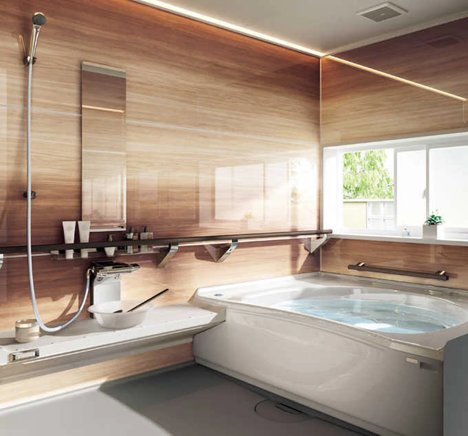 半身浴も全身浴も楽しめる「スマート浴槽」。