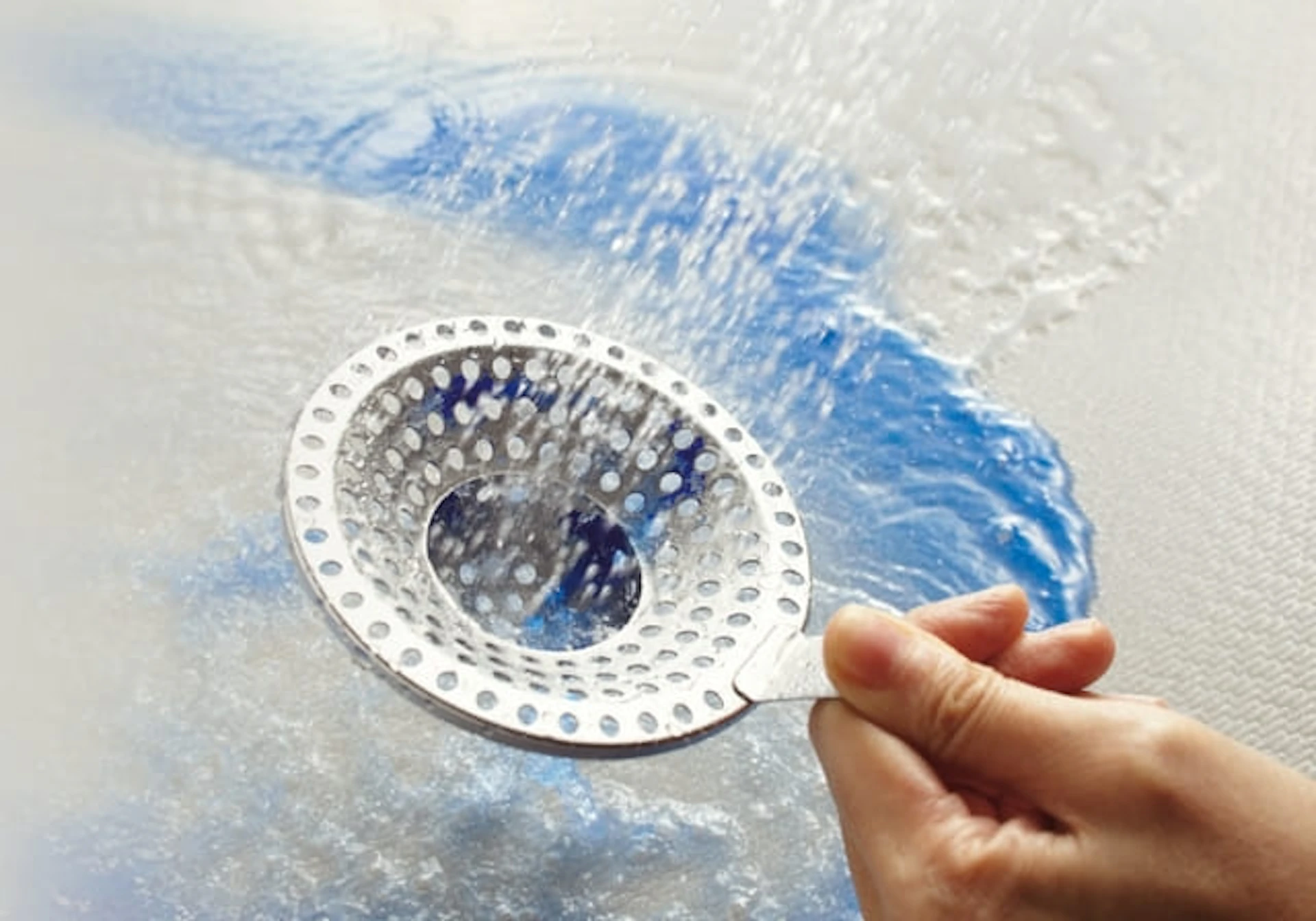 排水口に設置されたヘアキャッチャーは、コーティングが施されたステンレス製です。