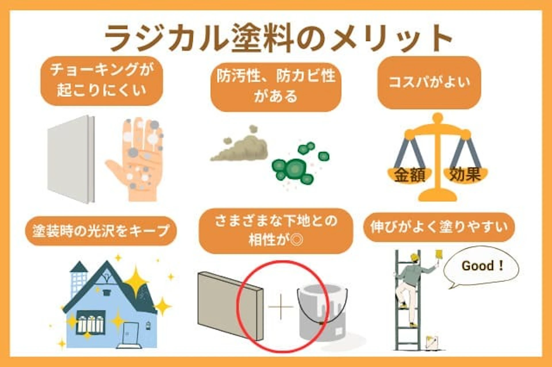 ※厳密に言うと、シリコンが配合されたラジカル塗料も存在するので、ここでは