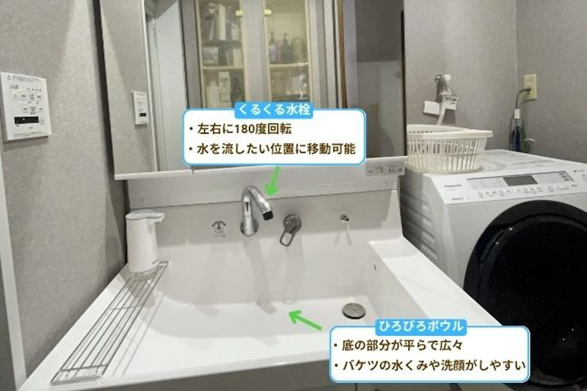 水を流したい位置に蛇口を向けることができるため、2人同時に朝の身支度をする、なんてことも可能です。