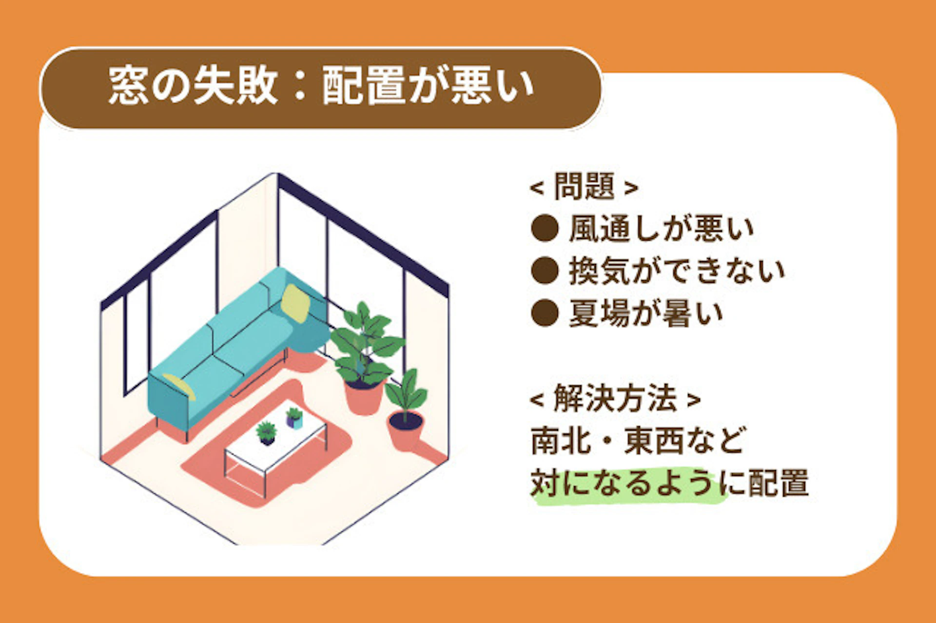 1つの部屋に窓を複数設置したものの、風通しが悪く、換気しにくいうえに、夏場は暑くて快適に過ごせない、というパターンは非常に多いです。