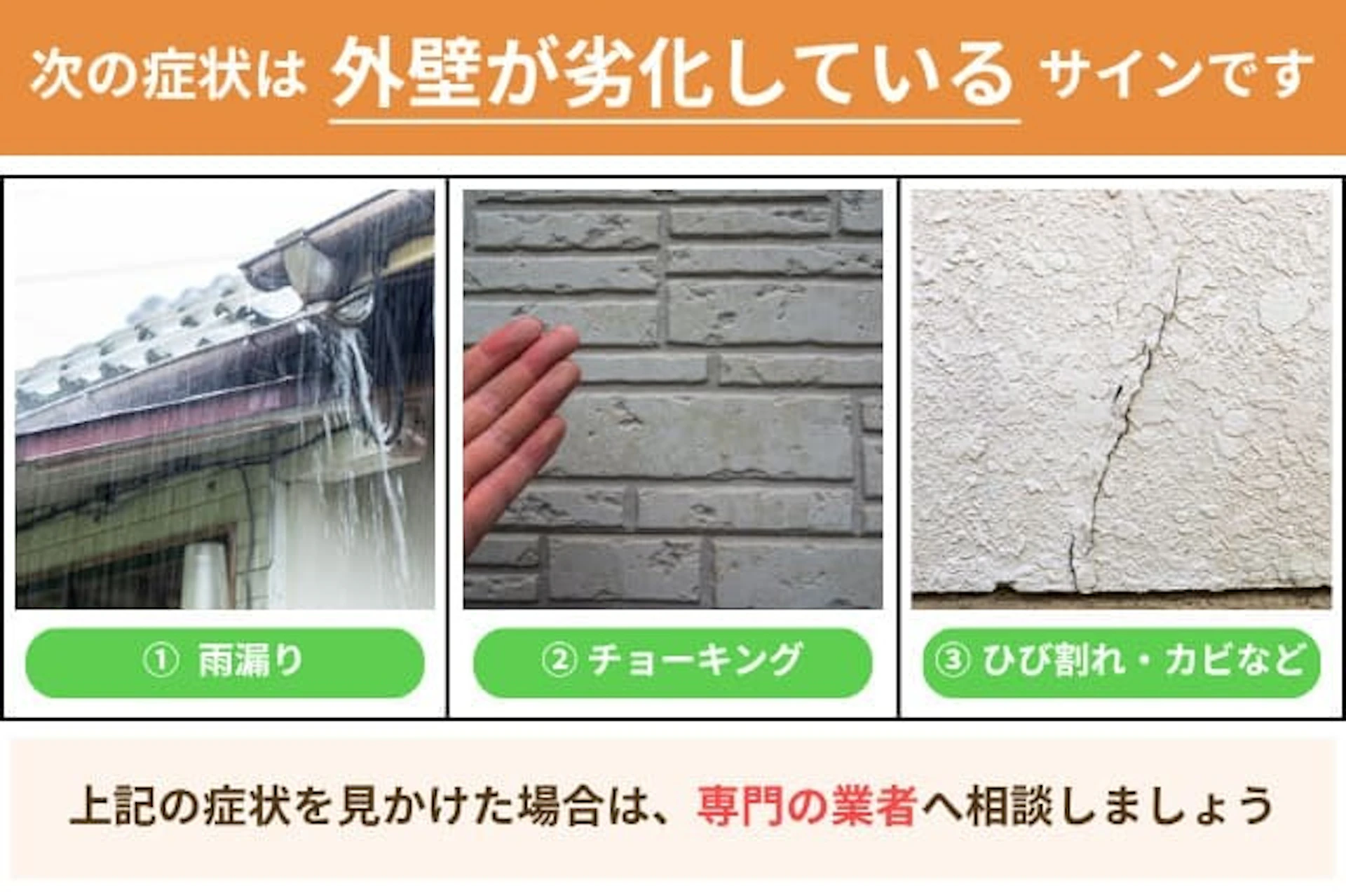 外壁に劣化の症状が見られたら、一般的なメンテナンス目安である12年が経過する前であっても、修繕が必要になる場合もあります。