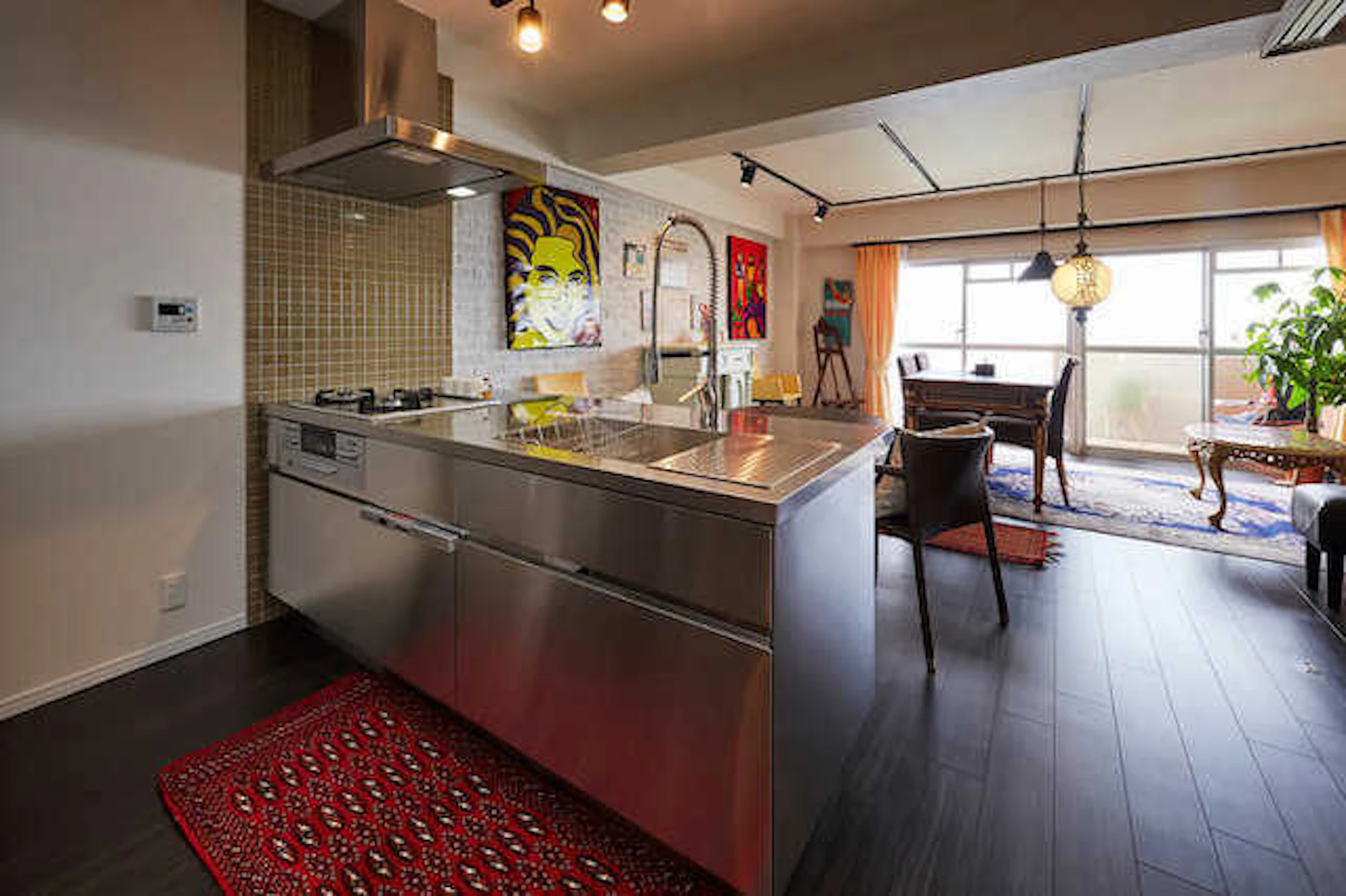 【事例②】 ステンレスとアクセントタイルで海外風のキッチンに