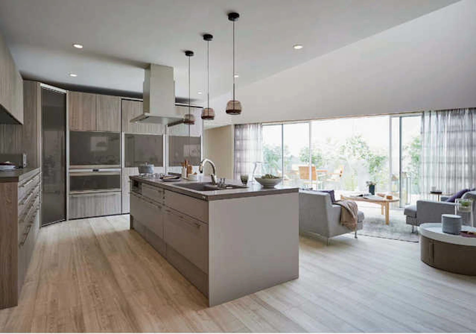 大容量の輸入食洗機や浄水器一体型水栓が付いており、見た目に反して高い機能性を持っています。