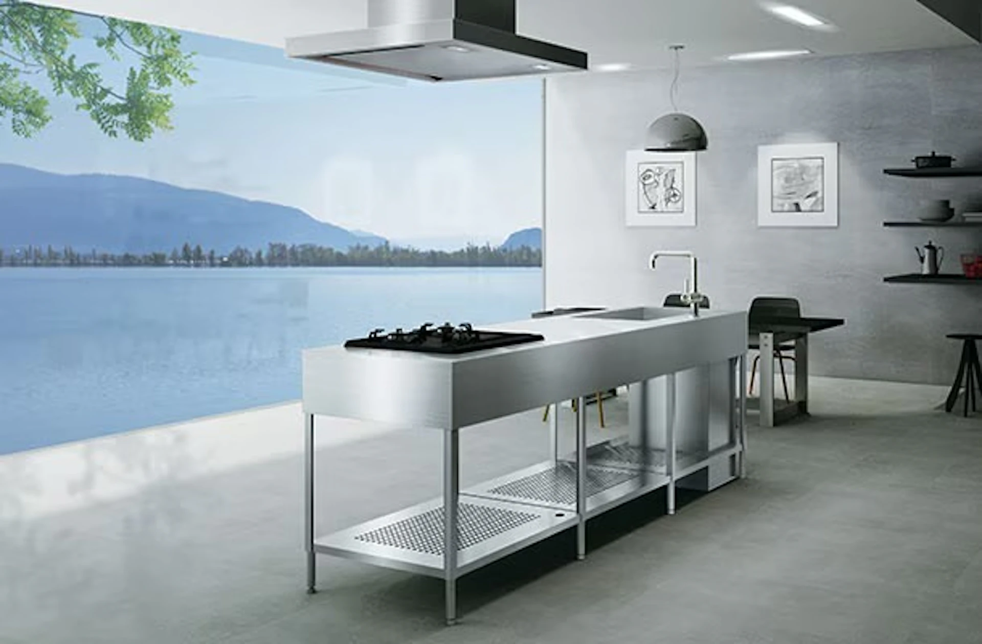 続いてご紹介するのは、収納・キャビネット部分などもステンレス製の「オールステンレスキッチン」と呼ばれるものです。