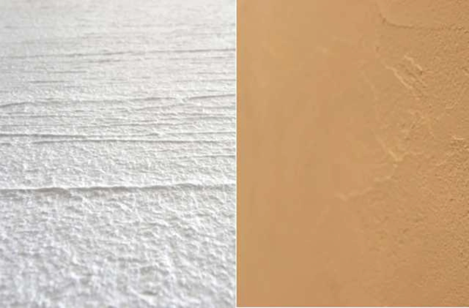 また質感にも違いがあり、漆喰がツルツルとした仕上がるになることに対し、珪藻土の場合は手触りがザラッとしています。