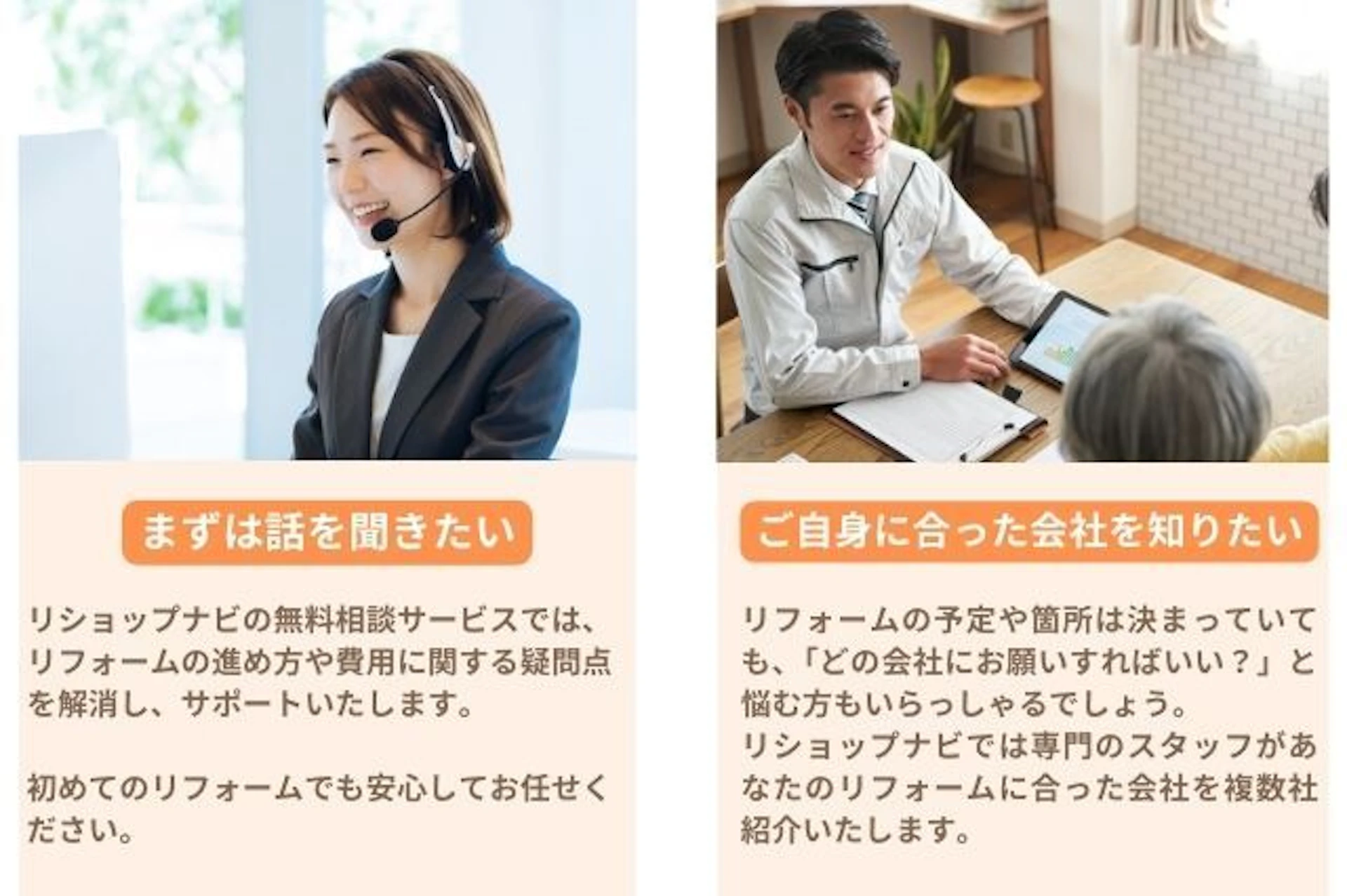 女性の担当者を希望する際には、リショップナビのサポートスタッフにお話いただければ代わりにリフォーム会社との調整をすることも可能なので、お気軽にご相談ください!