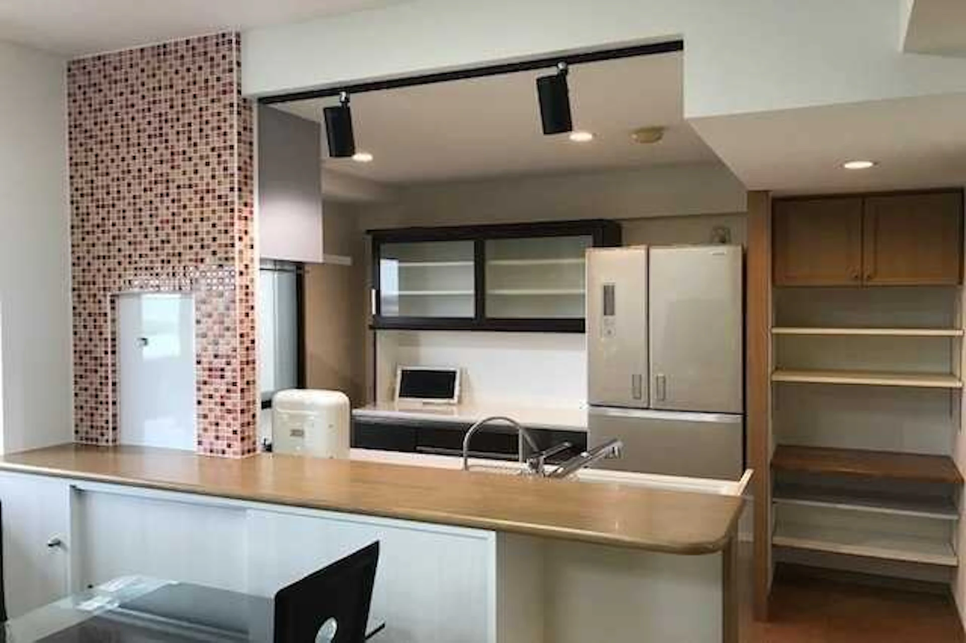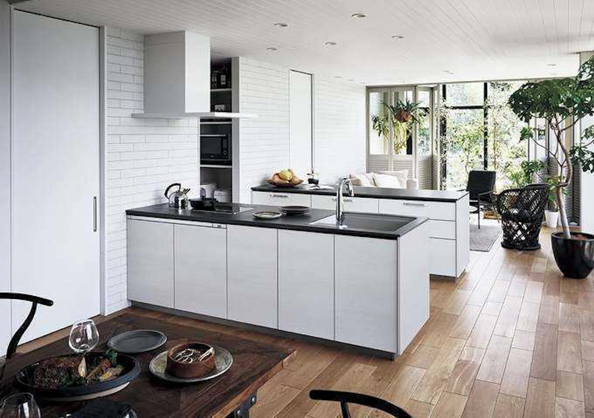 デザイン性に優れたLクラスに交換しました。カウンター下の収納も充実しており、使いやすさ抜群。なおダイニング側には大きめサイズのカウンターを設置しているので、軽食や読書などを楽しむのも良いですね。