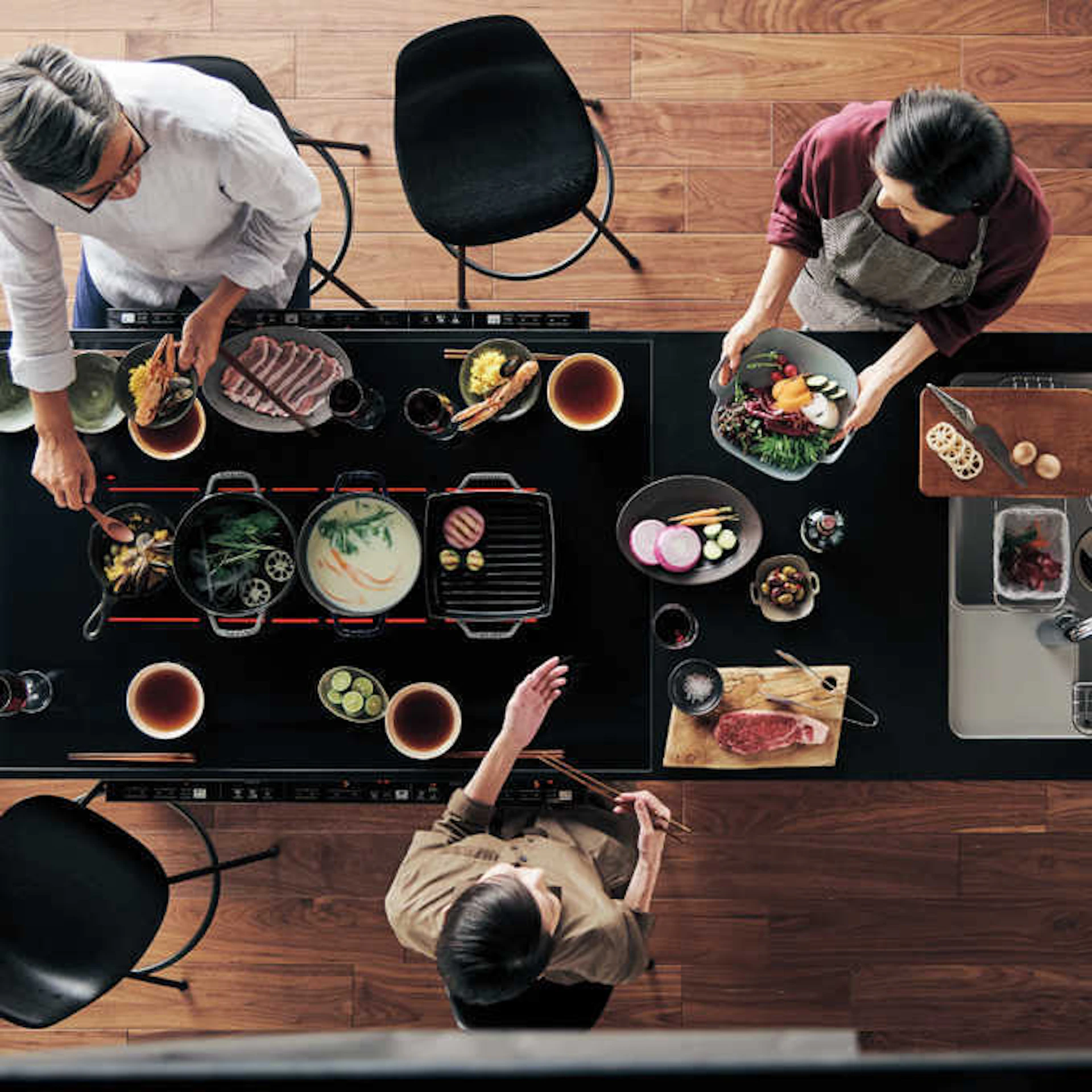 真ん中のヒーターの加熱範囲が変えられるので、従来のIHでははみ出していたような、大鍋やオーバル鍋も置くことができ、ホームパーティーが好きな方にもピッタリです。
