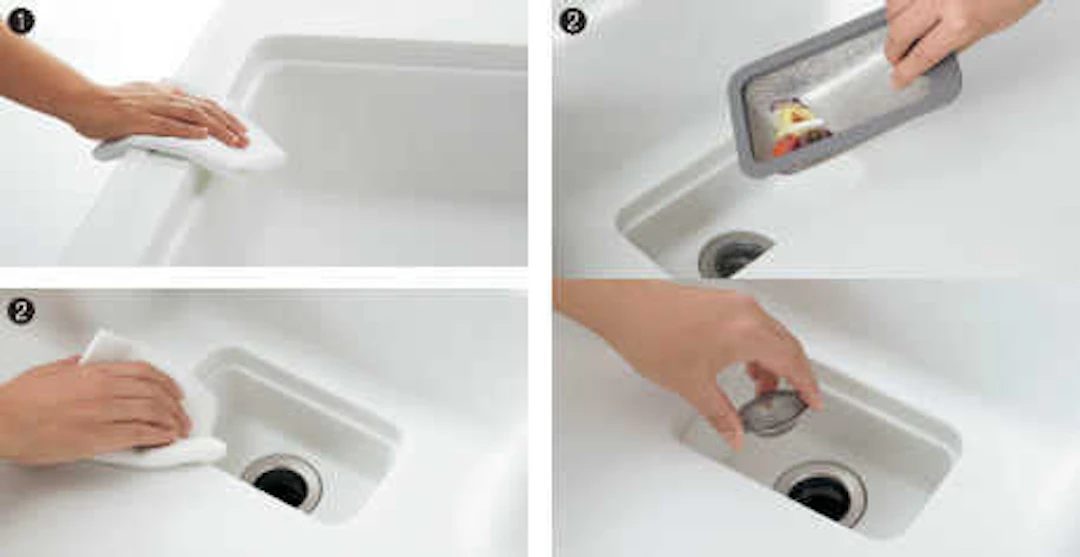 汚れやすいシンク後ろのカウンター部分や、継ぎ目、排水口まわりの隙間もない「スキマレスシンク」もおすすめ。