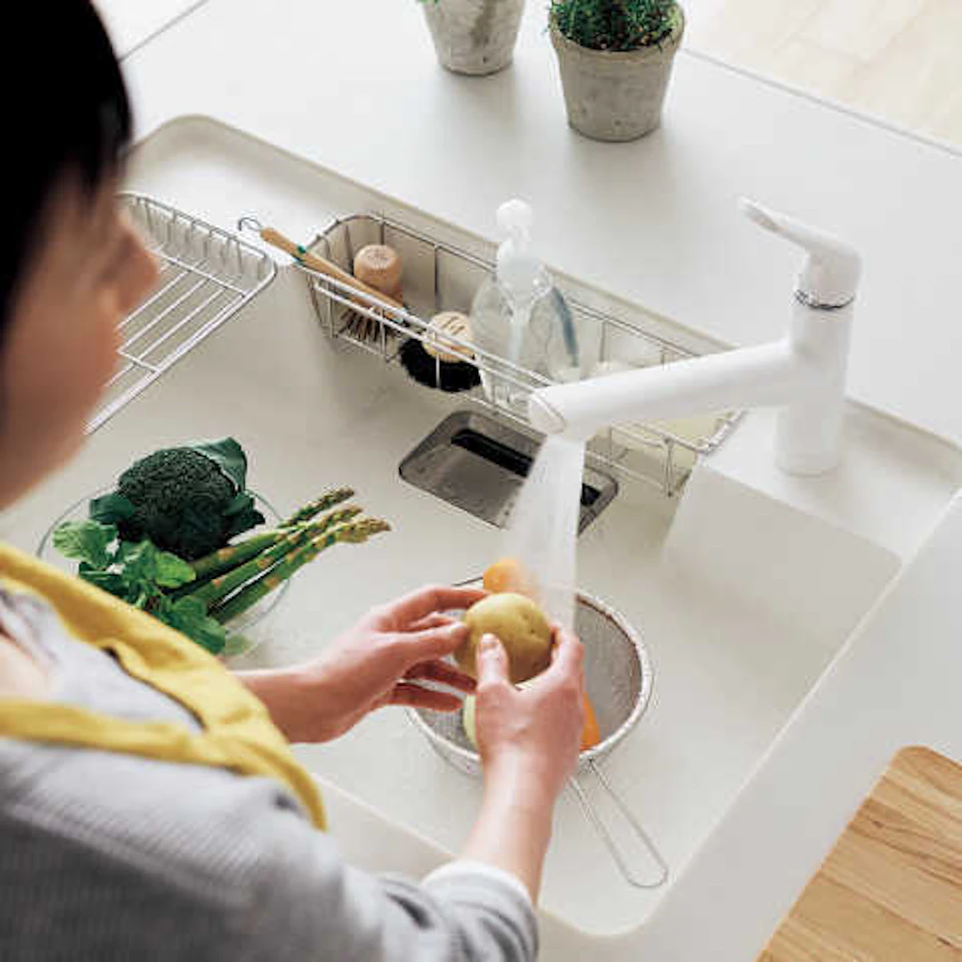 自由に動かせる洗剤ラック「スラくるネット」をプラスして使えば、調理も食器洗いもより効率的になります。